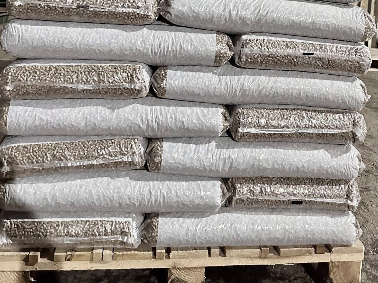 Сировина 100% сосна. Діаметр 6 мм. Зольність до 0.7%. Вологість до 9%. Теплота згоряння. 73 kWh/kg. Вага брутто 1080 кг +/- 3%. EN+ A1 (UA 025). FSC 100%(LL-COC-000110). Вартість 11 000 грн/тона (без доставки).