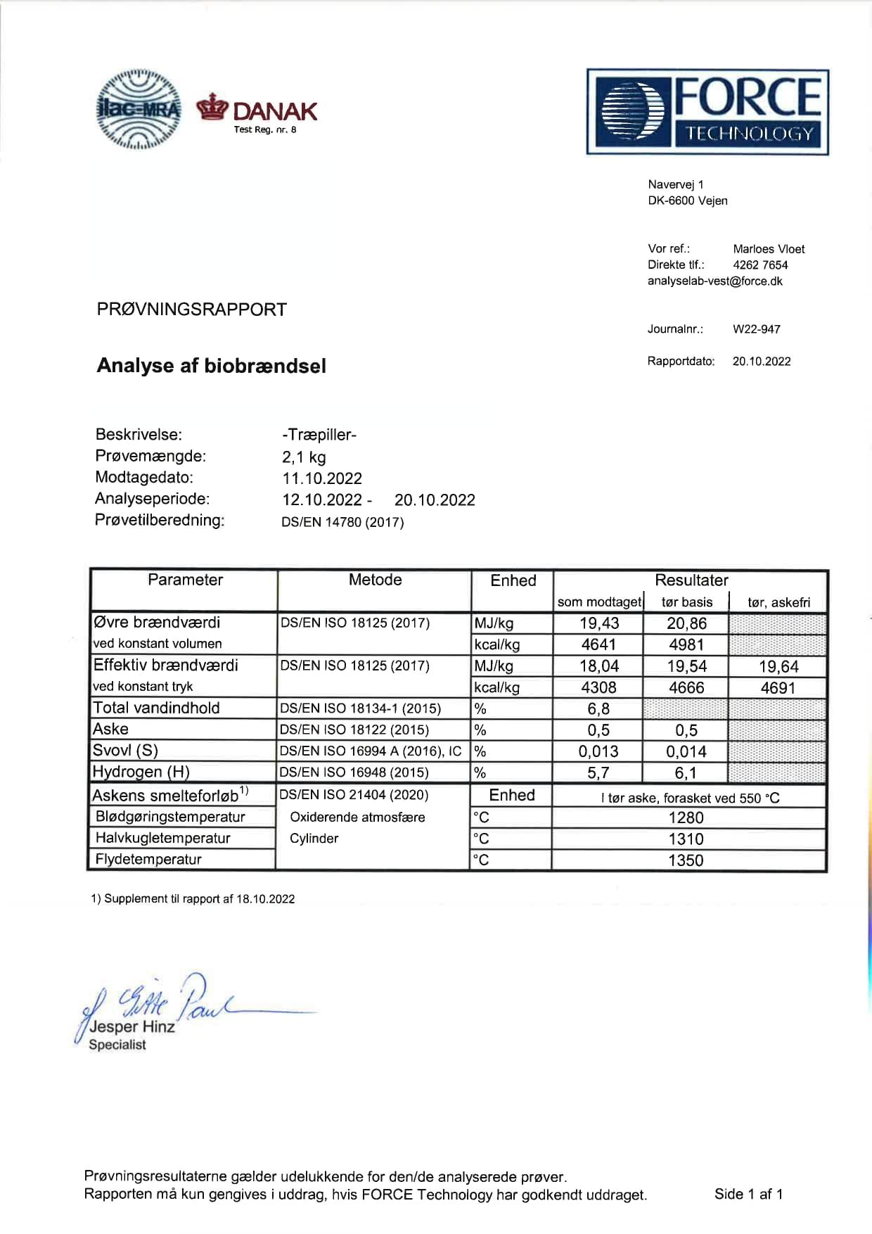 from FORCE TECHNOLOGY laboratory