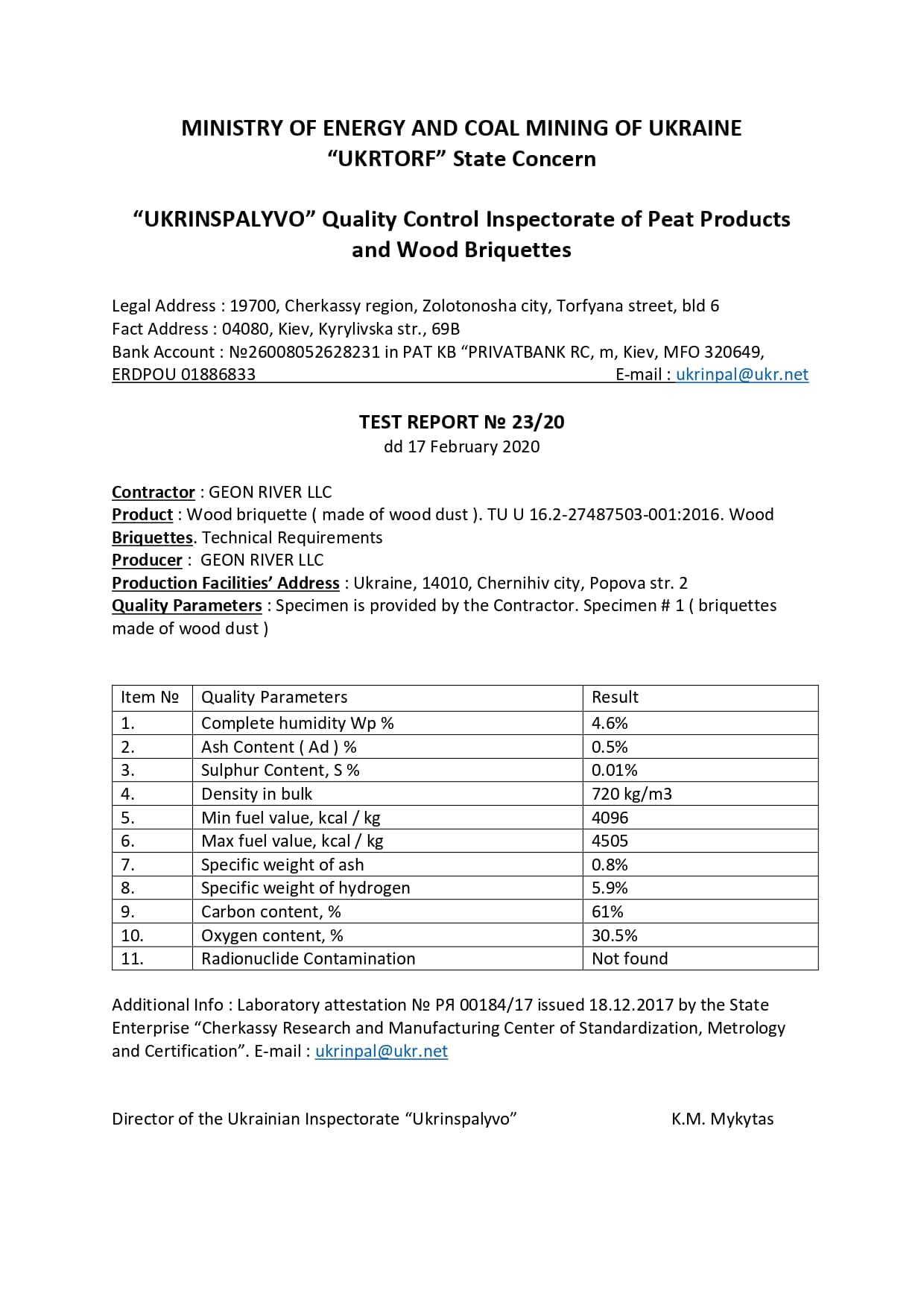 Test results of RUF-briquettes