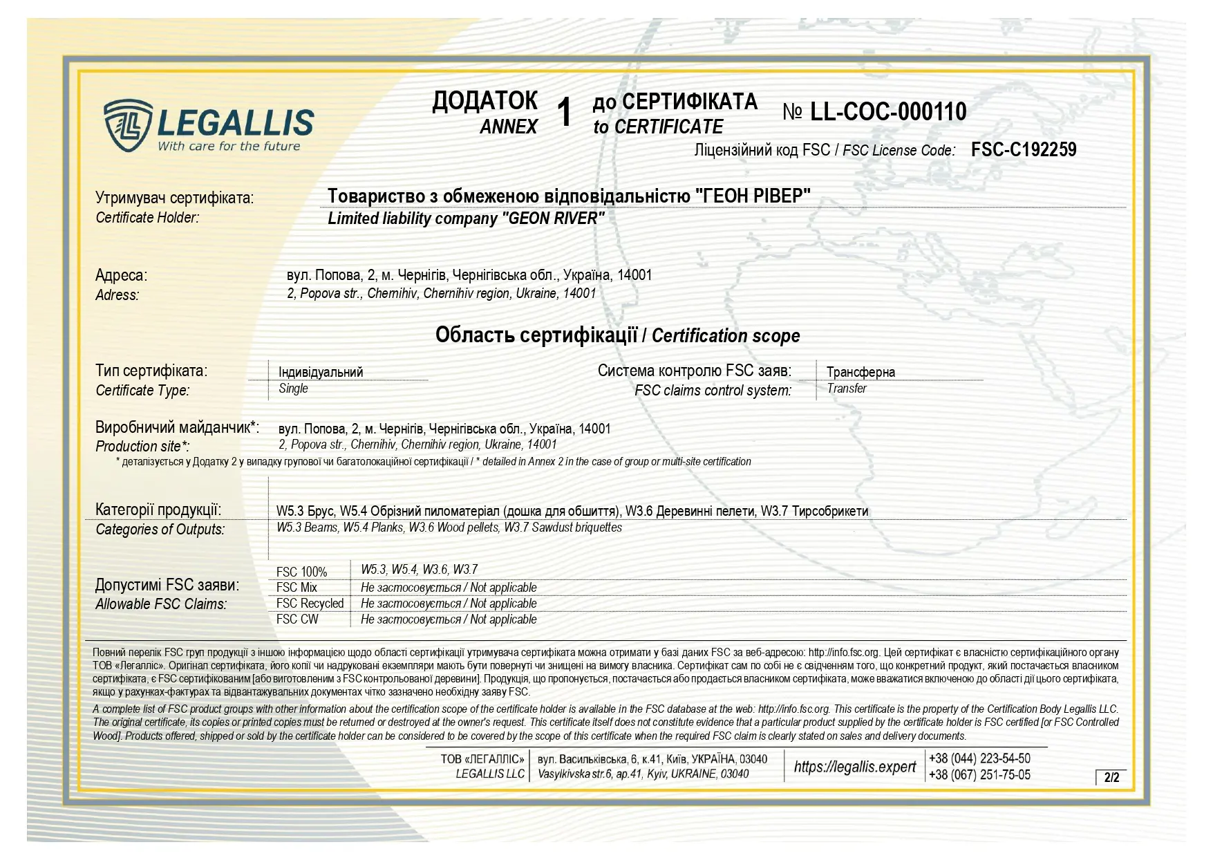 FSC Certificate LL-COC-000110