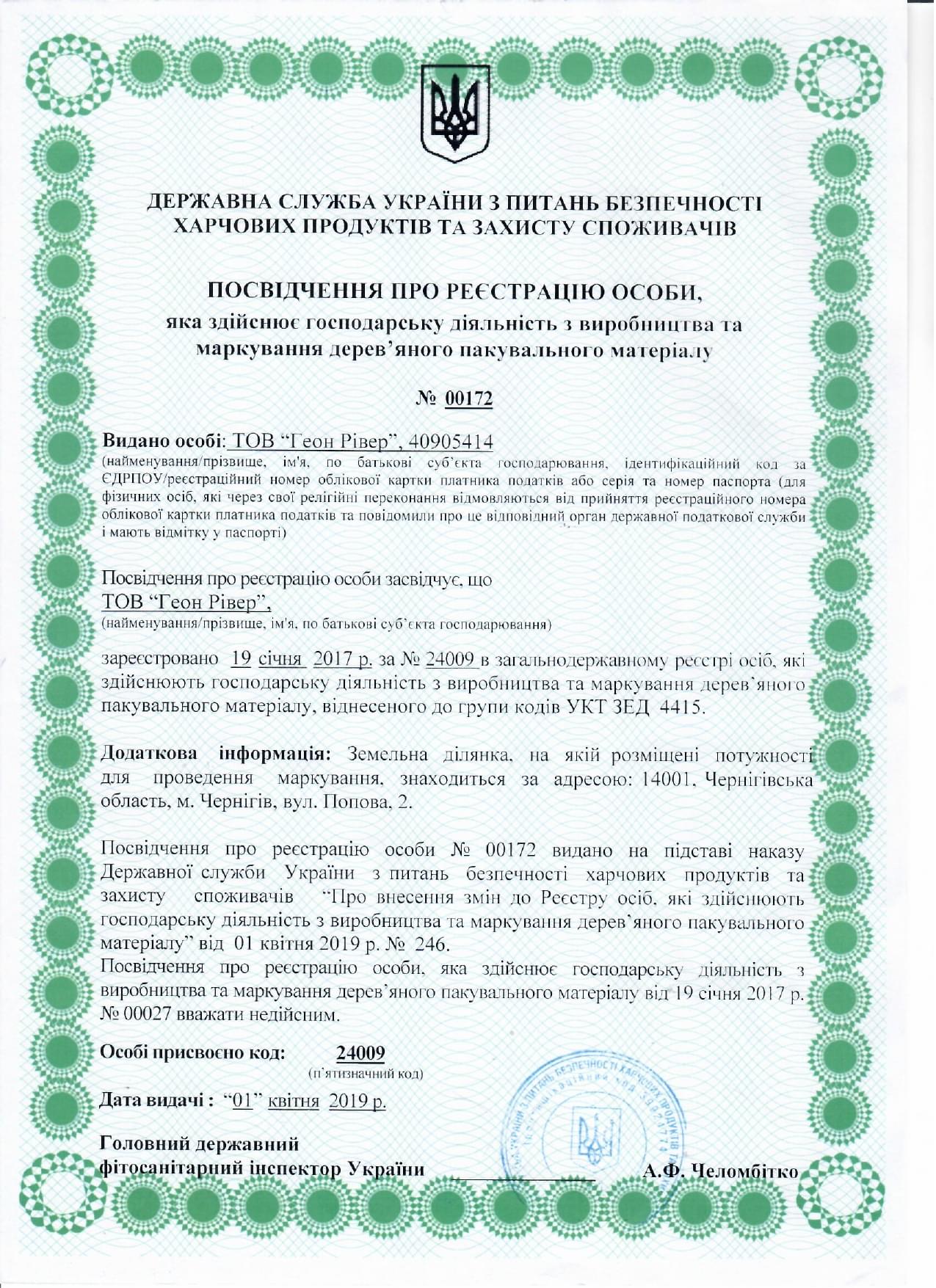 IPPC (ISPM)-15 Certificate
