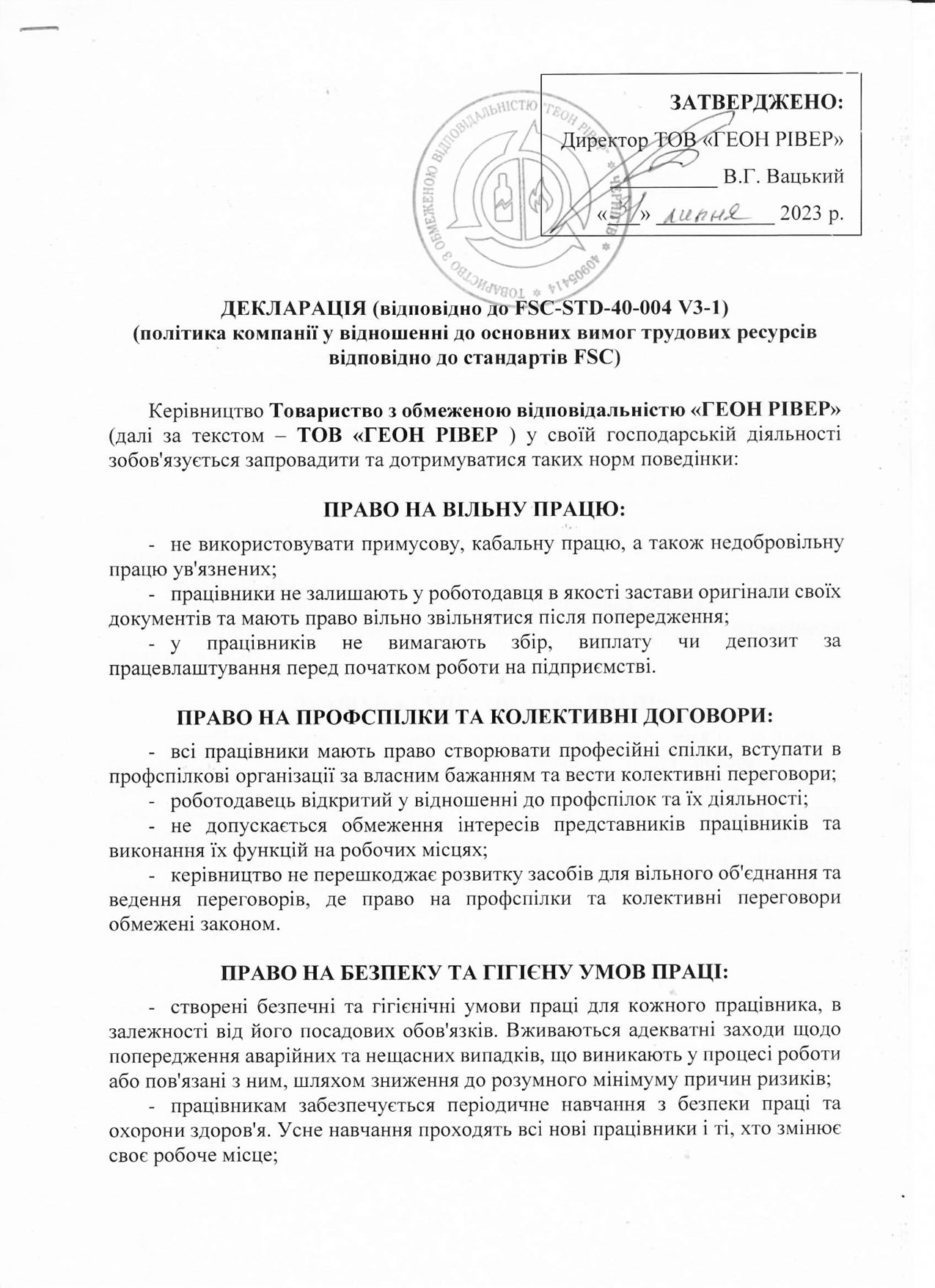 Декларація відповідно до стандартів FSC